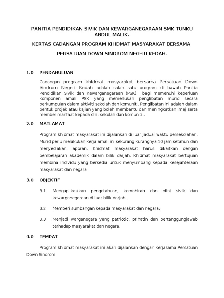 2 hanya penggunaan satu format bahasa penulisan sahaja. Objektif program khidmat masyarakat contoh kertas kerja khidmat. Kertas kerja cadangan bagi program khidmat masyarakat 2 1.